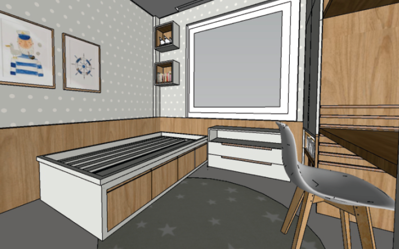 Um quarto que cresce junto com os sonhos: o projeto do Davi, por Karin Schnack